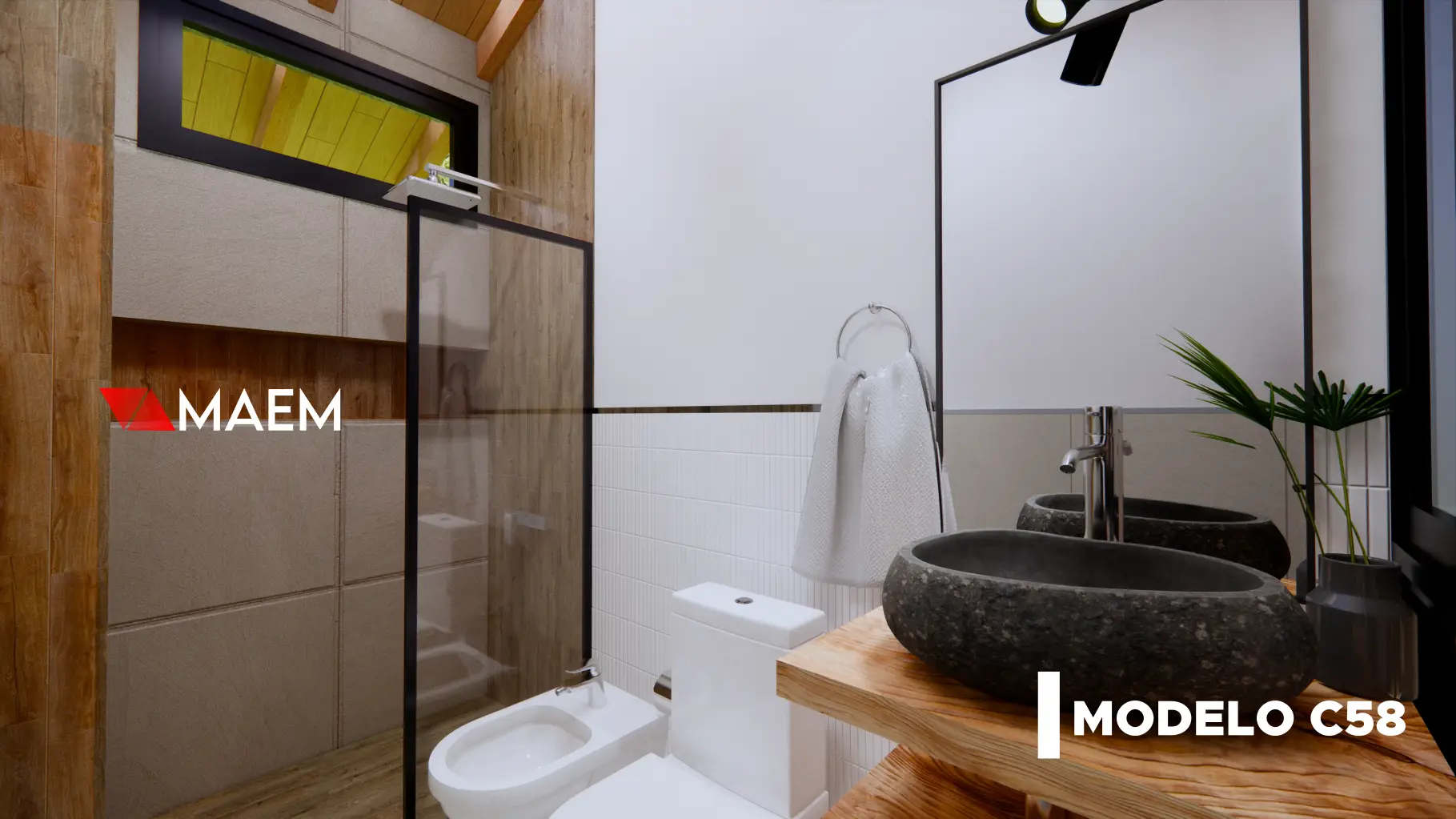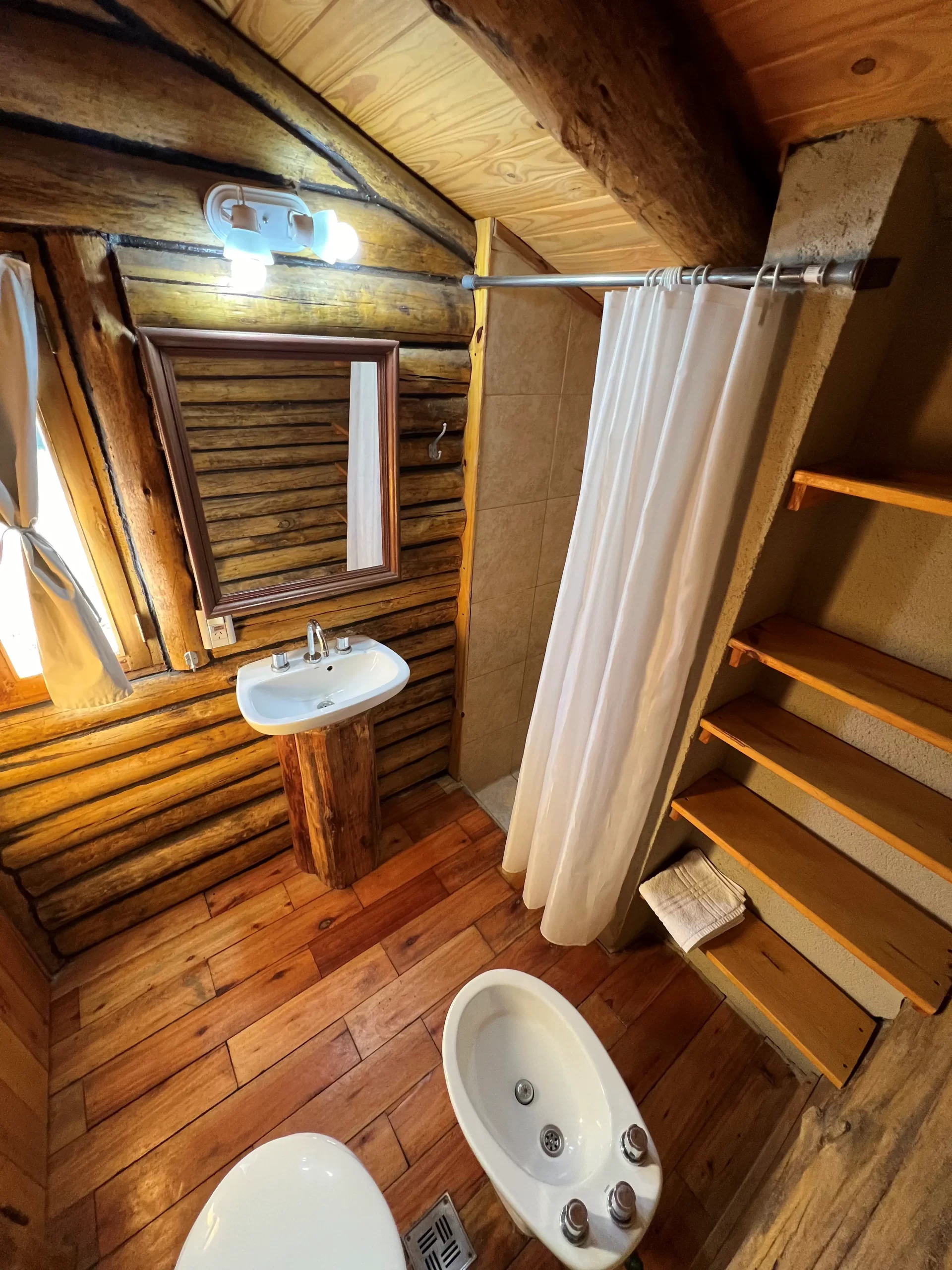 Todas las instalaciones sanitarias están incluidas: inodoro, bidet, lavatorio y ducha. Revestimos todas las zonas húmedas con cerámicos para que no tengas que preocuparte por la madera. También incluimos todos los desagües, cámara y pozo para el tratamiento de aguas grises.